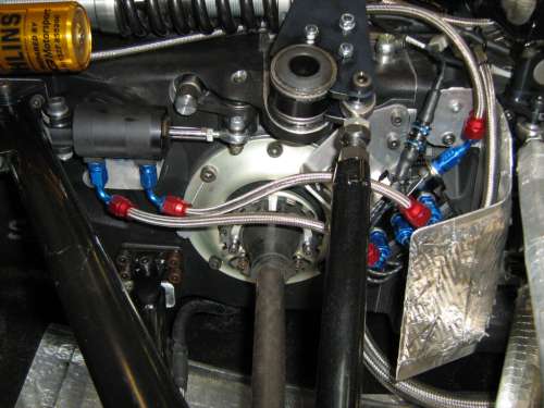 - Another compact installation, this time on a Lola B99/50 F3000 car. Notice the pneumatic actuator at the bottom of the photo - it would clearly be impossible to mount an electric solenoid in this position!